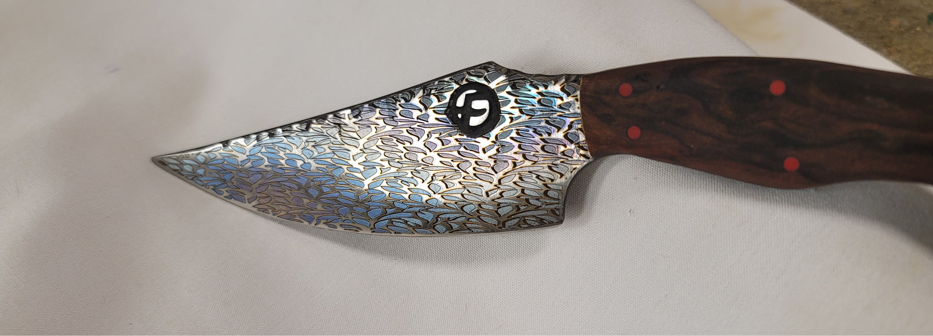 We have been enjoying getting to know and learn more about our 100w Fiber laser this year. We have had the chance to take some great classes with some amazing artist this past year and learn new techniques away from the CO2 laser world. I have a very precise eye, and that seems to be a big plus in the Fiber laser world. I really enjoy being able to take a customers thoughts or ideas and make them come to reality. We do knives, Guns, Challenge Coins, Belt Buckles, Kitchen Knives, Pocket Knives, I can do most anything a customer is looking to have etched, but I try to stay away from the glasses and tumbler world. Please look inside at the gallery of some of our work we have done, and if you are interested, please reach out to me and lets speak about your next project. There is a $100.00 dollar min. deposit for laser work, that will go to the total of the project cost.